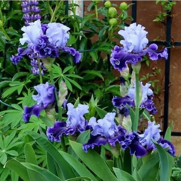 The flowers are characterized by their unique petal formation, with three upright petals called standards and three drooping petals called falls. Irises thrive in well-drained soil and prefer full sun to partial shade.