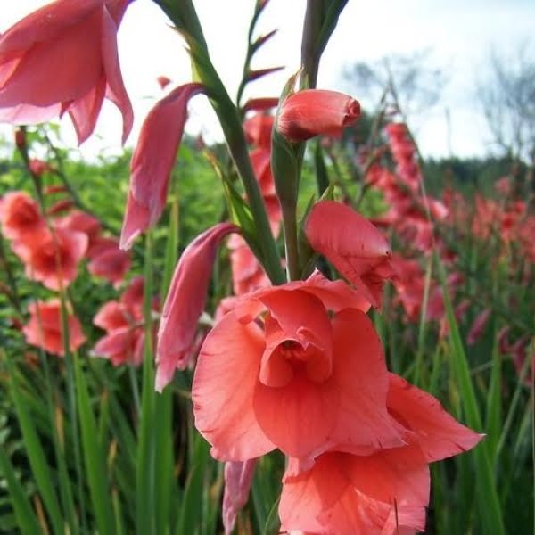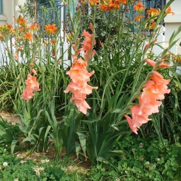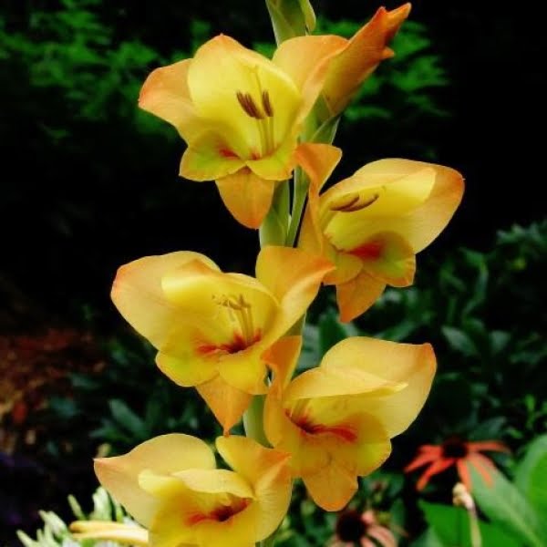Gladiolus plants produce multiple flower stalks, each adorned with several blooms, creating a striking visual impact in the garden. They bloom from late spring to early fall, adding beauty and elegance to any landscape. Gladiolus is a popular choice for cut flower arrangements and can also be grown in garden beds or containers to create a dramatic floral display.