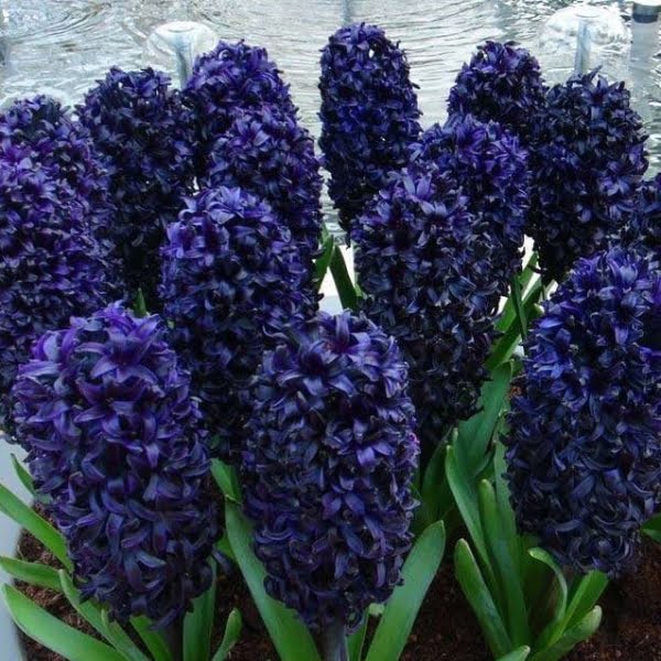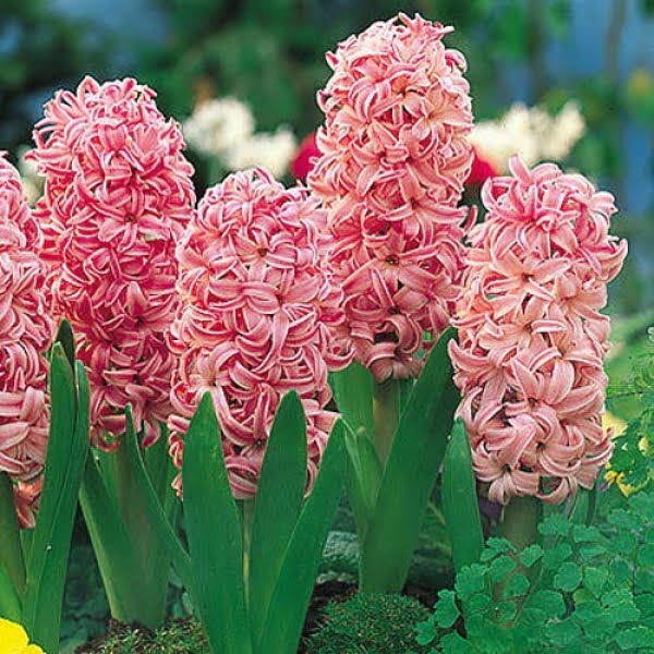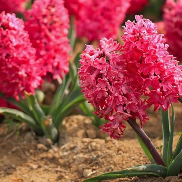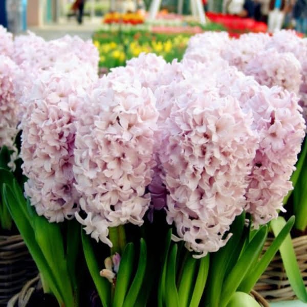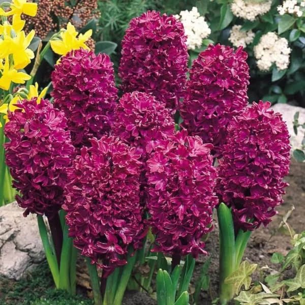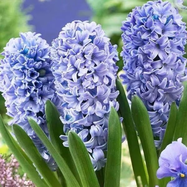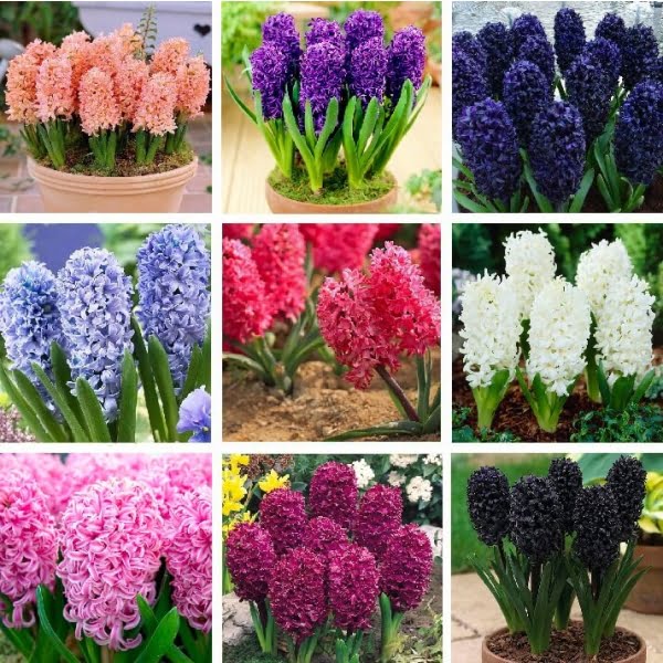 The flowers come in a variety of colors, including purple, pink, white, blue, and yellow, and their dense, tightly packed blooms create a visually appealing spectacle. Hyacinths prefer well-drained soil and full sun to partial shade.