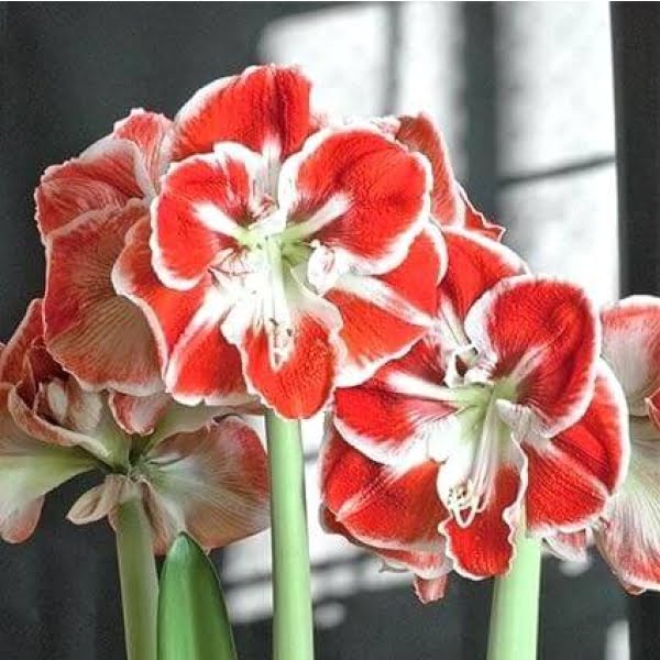 Amaryllis bulbs produce tall, sturdy stems that bear large, lily-like flowers. The blooms come in an array of colors, including rich reds, pinks, whites, and bi-color variations, captivating observers with their bold and elegant presence. Known for their ease of care and ability to bloom indoors during the winter, Amaryllis bulbs have become synonymous with festive and celebratory occasions.