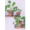 The Pilea peperomioides features flat, coin-shaped leaves that grow on long, slender stems, giving it a distinct visual appeal. It is a relatively low-maintenance plant that prefers bright, indirect light and moderate watering. With its charming foliage and compact size, the Pilea peperomioides is a delightful addition to any indoor plant collection, adding a touch of greenery and elegance to your living space.
