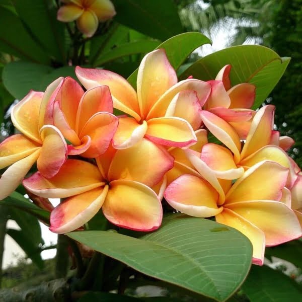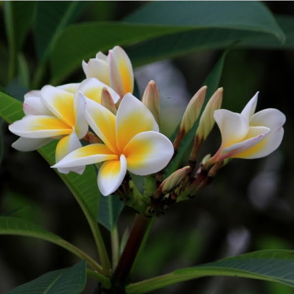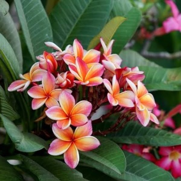 The plant features thick, fleshy branches and glossy, elongated leaves. Its flowers come in a variety of colors, including white, yellow, pink, and red, often with a sweet, intoxicating fragrance. Plumeria is a popular choice for gardens, as well as for making leis and floral arrangements. Its beauty, fragrance, and tropical charm make it a favorite among garden enthusiasts and flower lovers alike.