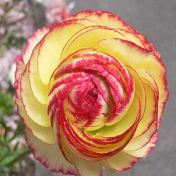 Ranunculus asiaticus, commonly known as Persian buttercup, is a stunning flowering plant that graces gardens with its vibrant and delicate blooms. Native to the eastern Mediterranean region, this perennial plant produces large, ruffled flowers in a wide range of colors, including shades of red, pink, orange, yellow, and white. The flowers are characterized by numerous petals arranged in a rosette shape, resembling small, intricate roses.