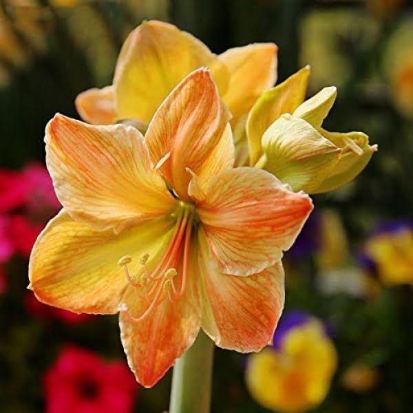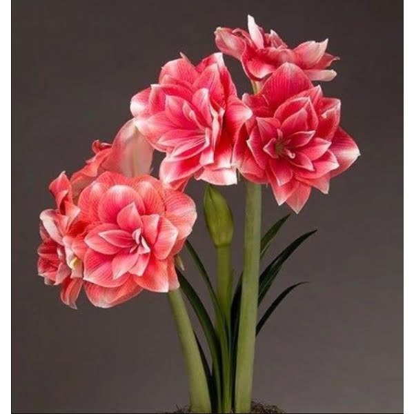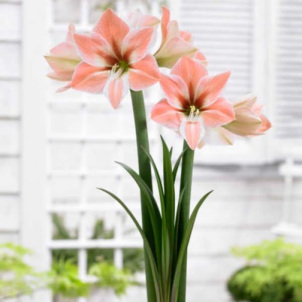 Amaryllis bulbs produce tall, sturdy stems that bear large, lily-like flowers. The blooms come in an array of colors, including rich reds, pinks, whites, and bi-color variations, captivating observers with their bold and elegant presence. Known for their ease of care and ability to bloom indoors during the winter, Amaryllis bulbs have become synonymous with festive and celebratory occasions.