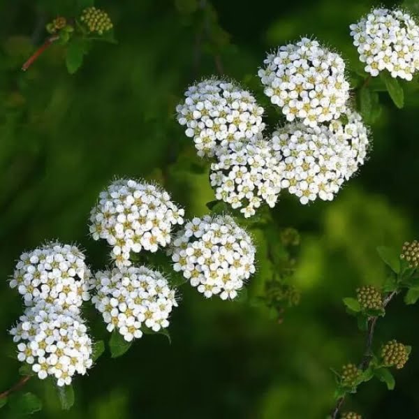 Spiraea, commonly known as bridal wreath, is a genus of flowering shrubs that belongs to the Rosaceae family. These shrubs are known for their cascading clusters of small, delicate flowers that create a beautiful display in spring and summer. Spiraea comes in a variety of species and cultivars, each with its own unique characteristics, but they all share a graceful and elegant appearance. These hardy shrubs are easy to grow and maintain, making them popular choices for landscaping and garden borders. With their abundant blooms and lush foliage, spiraea adds charm and color to any garden, making it a beloved choice among gardeners.